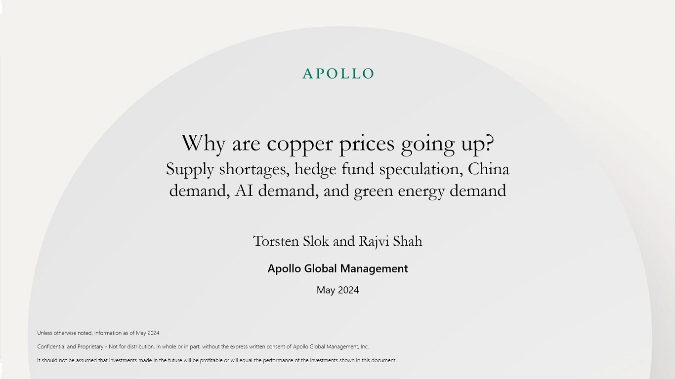 Copper prices are rising due to supply shortages, hedge fund speculation, China demand, AI demand, and green energy demand. For more, see our chart book available here.