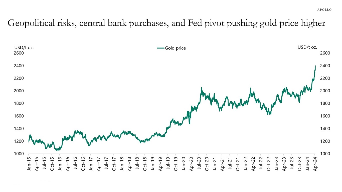 The price of gold has been rising in recent months on the back of geopolitical tensions, central banks including China stepping up purchases of gold, and expectations of lower rates triggering a rise in inflation after the December Fed pivot.