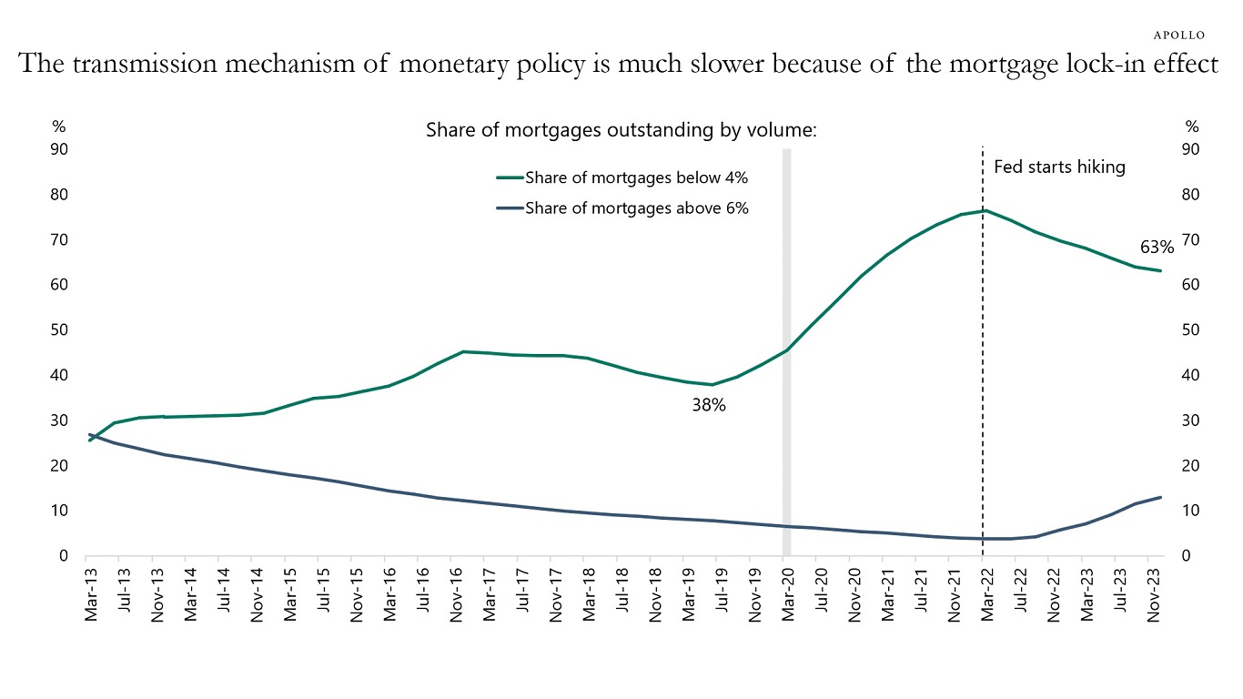 There is a major gap opening up between the mean and the median of long-term inflation expectations, which means that half of the population has long-term inflation expectations that are dramatically higher than the other half, see charts below and in this chart book. This is a very significant challenge for the Fed because it cannot cut interest rates when inflation expectations are out of control.