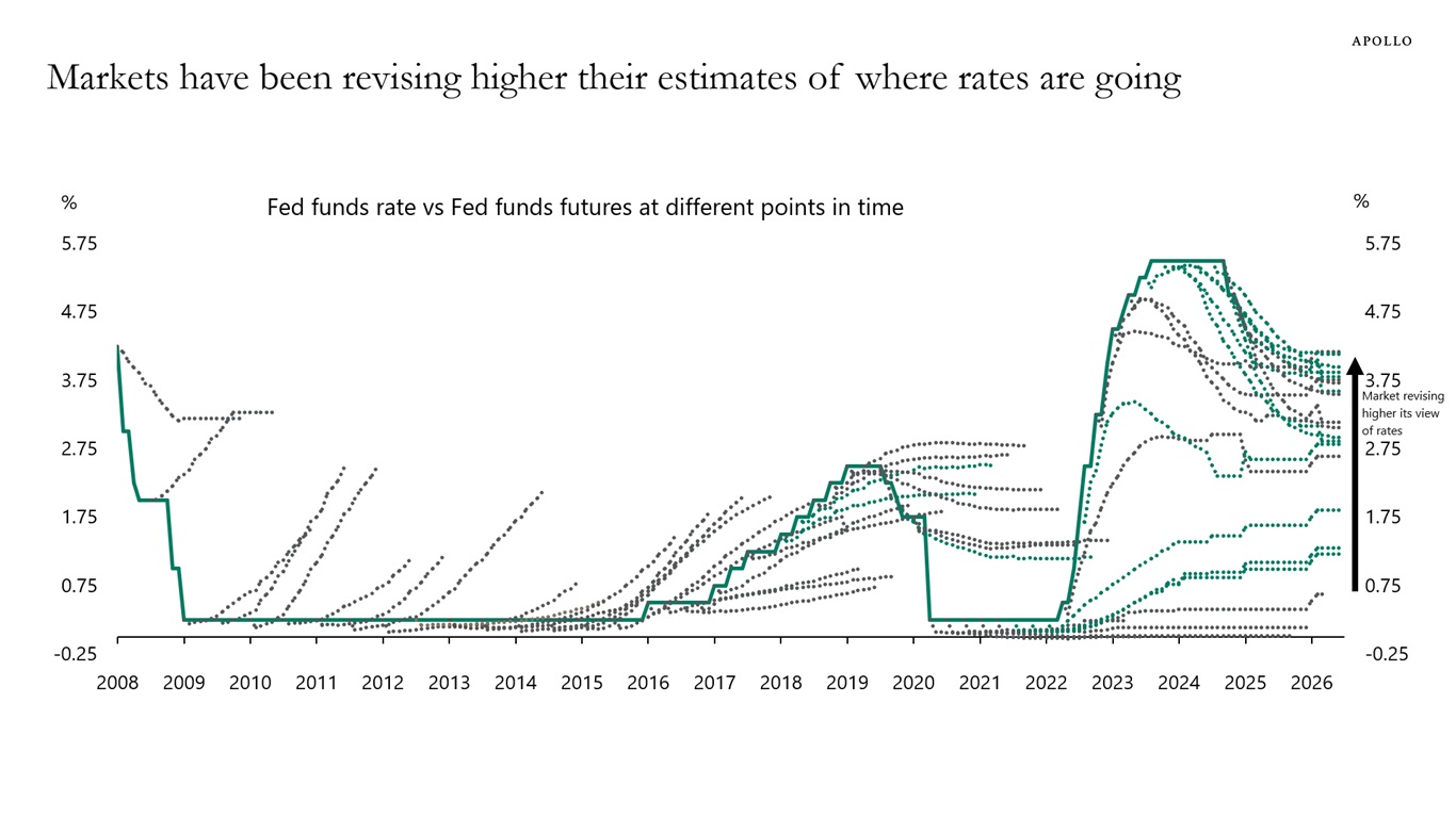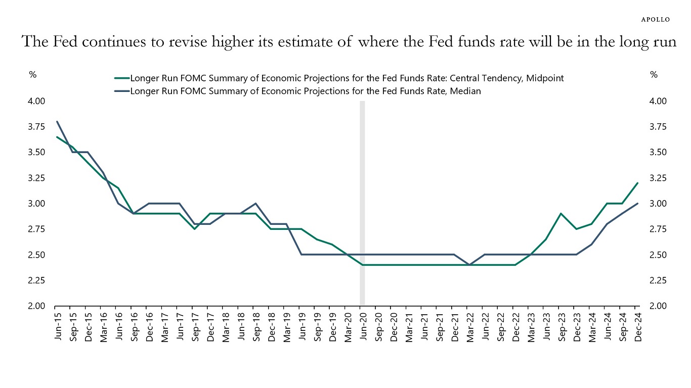 In other words, 10-year rates have increased an additional 75 bps more than what can be justified by changing Fed expectations, which is likely a reflection of emerging fears in markets about US fiscal sustainability.