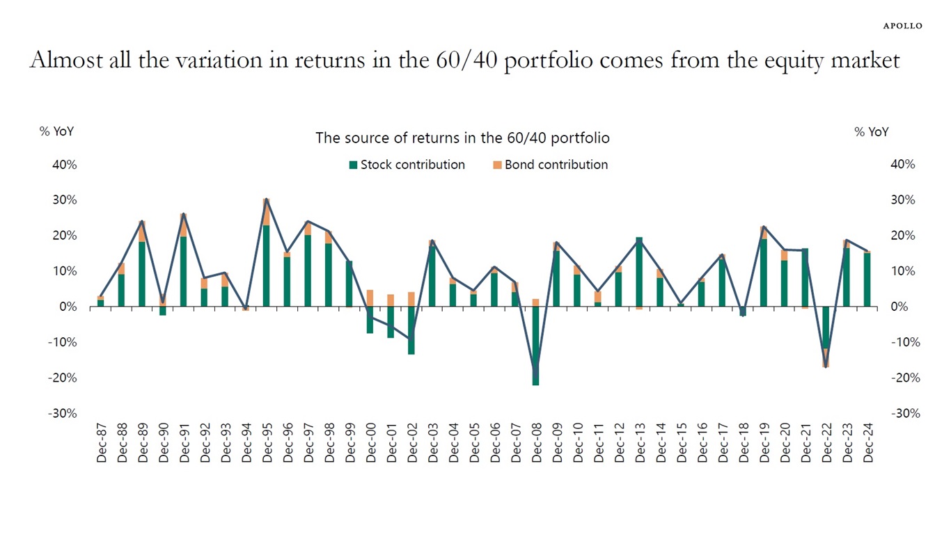 Almost all the variation in returns in the 60/40 portfolio comes from the equity market