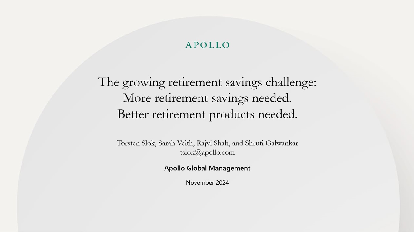 Source: Apollo Chief EconomistUnless otherwise noted, information as of November 2024 Proprietary – Not for distribution, in whole or in part, without the express written consent of Apollo Global Management, Inc.