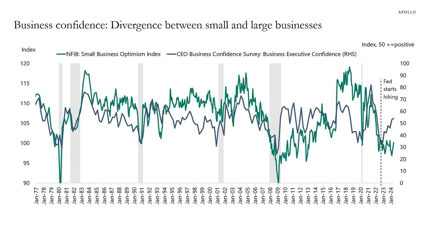 Source: Conference Board, NFIB, Haver Analytics, Apollo Chief Economist