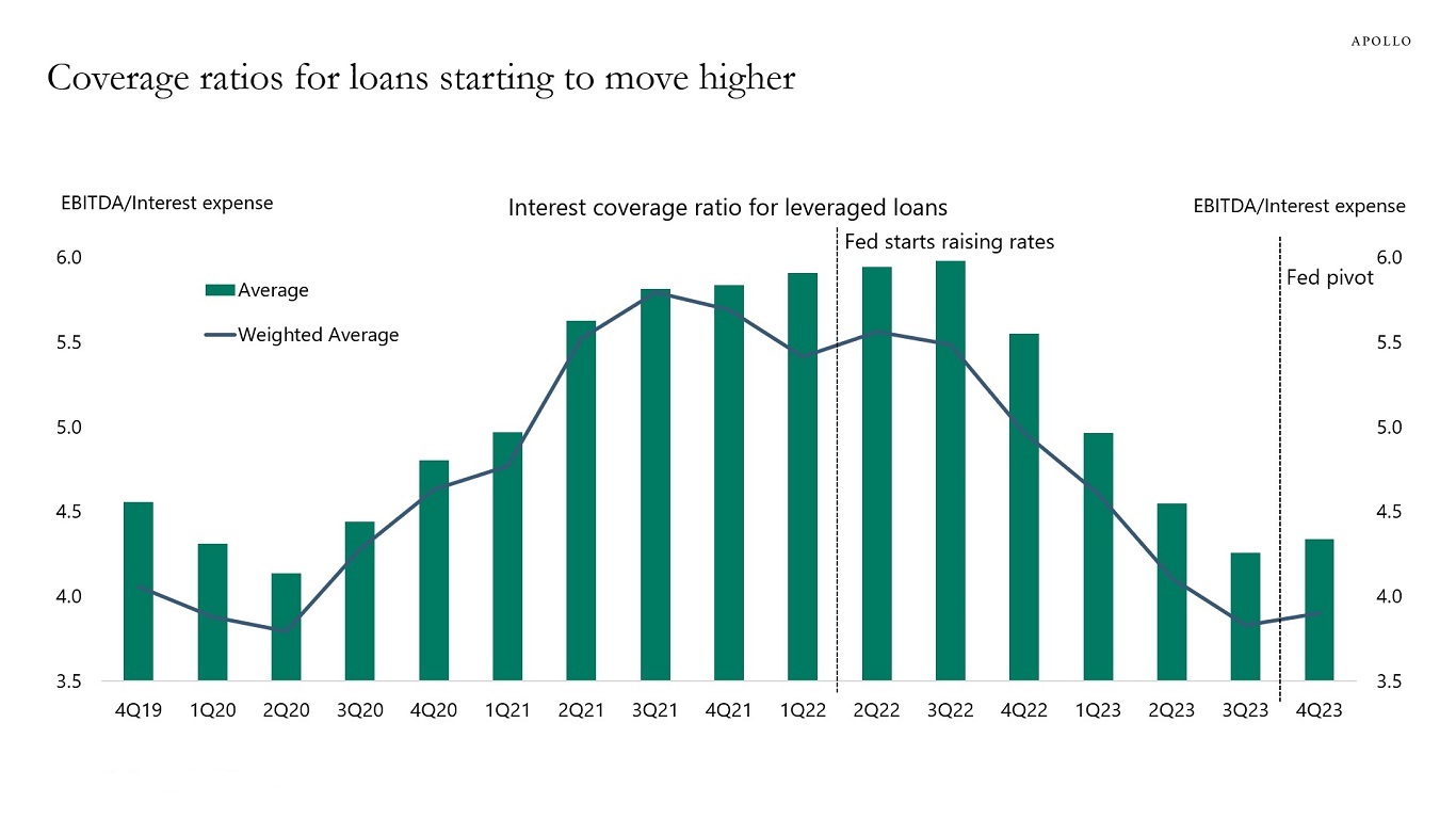 After the Fed started raising rates in March 2022, coverage ratios began to move lower, see chart below, and after the Fed turned dovish at the November 2023 FOMC meeting, coverage ratios have started to rebound.