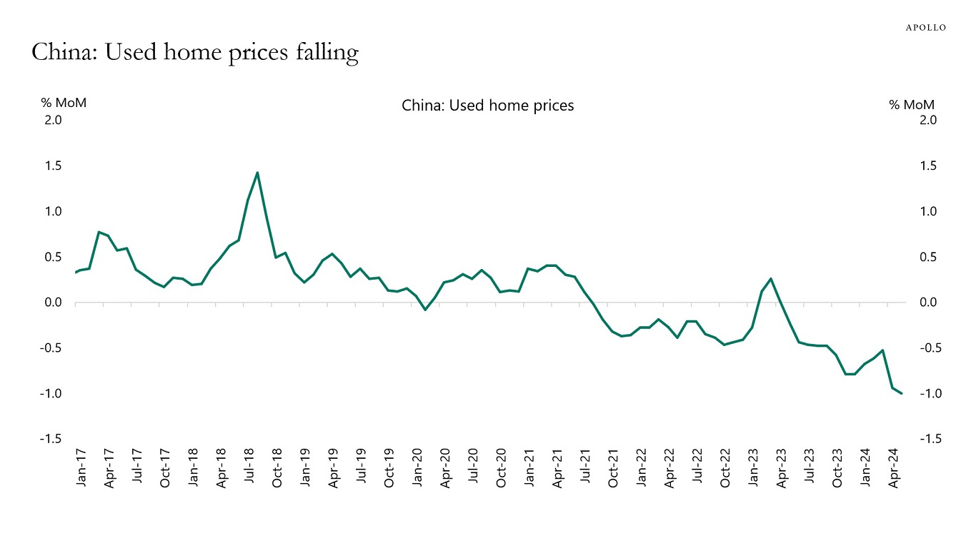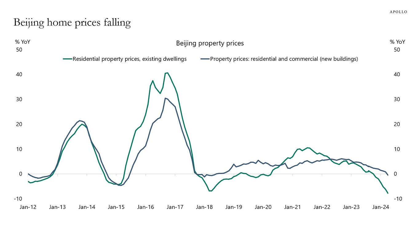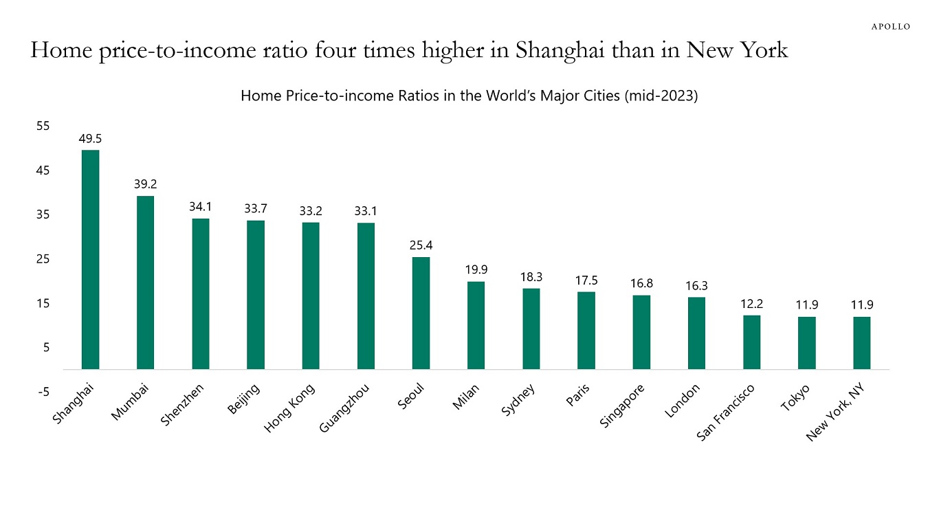 Source: BIS, Haver, Apollo Chief EconomistSource: Bloomberg, Apollo Chief EconomistSource: Bloomberg, Apollo Chief EconomistSource: Haver, Apollo Chief Economist. Data as of Q3 2023.Source: Numbeo (https://www.numbeo.com/property-investment/rankings.jsp?title=2023-mid), Apollo Chief Economist. Note: Price to Income Ratio is the basic measure for apartment purchase affordability. It is generally calculated as the ratio of median apartment prices to median family disposable income, expressed as years of income.