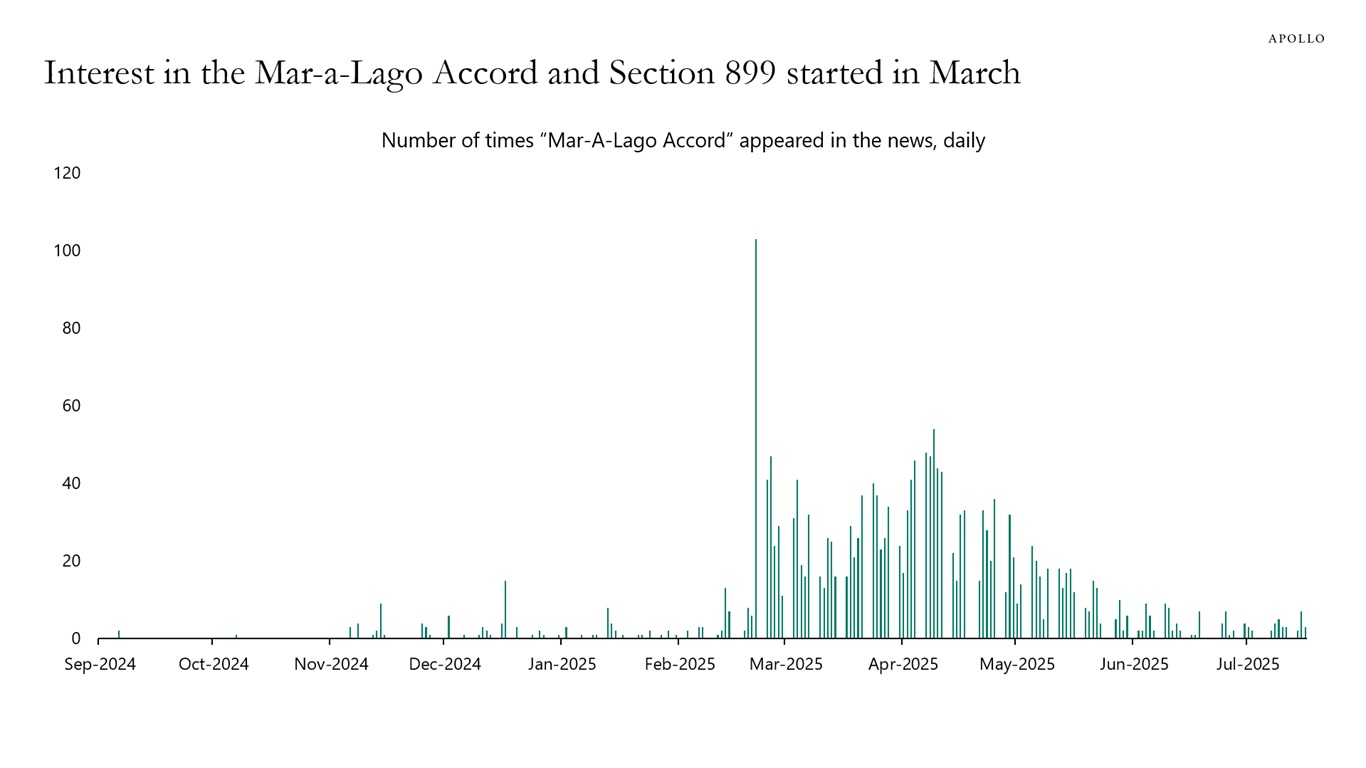 Regression models indicate that this was due to the trade war and economic policy uncertainty, including concerns among foreign investors about Section 899 and the Mar-a-Lago Accord.
