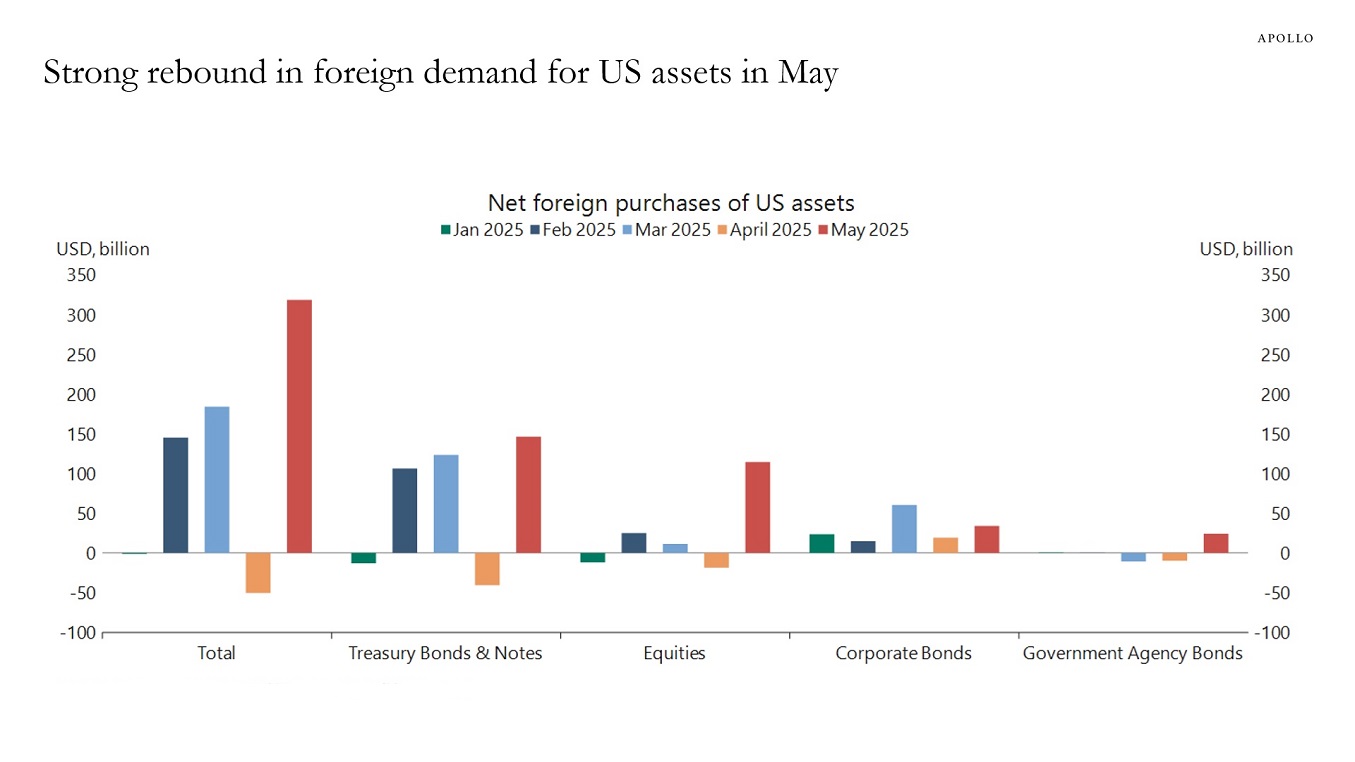 Renewed strong appetite for US assets after Liberation Day is also visible in the Treasury International Capital data for May.