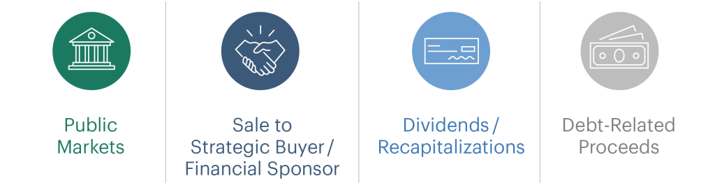 While there has been some recovery in private equity exit activity, volumes remain well below five-year averages.4 Even if exit volumes normalize, the backlog of assets needing to be sold is so significant that distribution yields, as a percentage of assets held, are unlikely to normalize as well. In a constrained exit environment, liquidity becomes a strategic capability. Leading firms typically approach exits with discipline and flexibility: