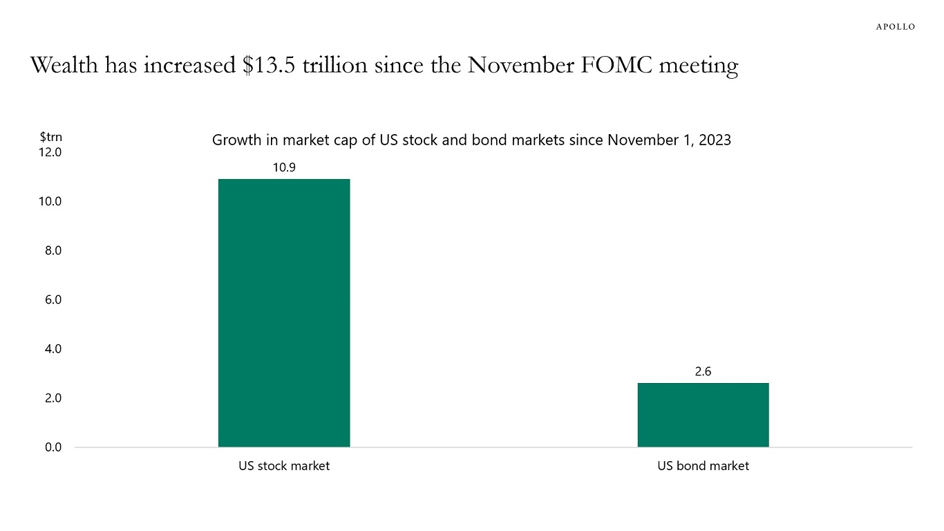 The S&P 500 is up 25% since the November FOMC meeting. That is a $10.9 trillion increase in the market cap of the S&P 500 in five months.