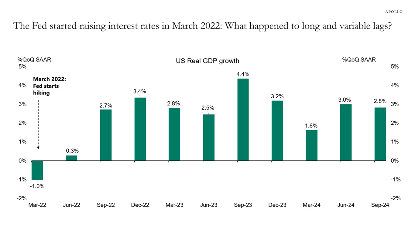 Source: Federal Reserve Board, Haver Analytics, Apollo Chief EconomistNote: The effective interest rate (%) reflects the amortization of initial fees and charges over a 10-year period, which is the historical assumption of the average life of a mortgage loan. Source: Freddie Mac, BEA, Bloomberg, Apollo Chief EconomistSource: BEA, Haver Analytics, Apollo Chief Economist